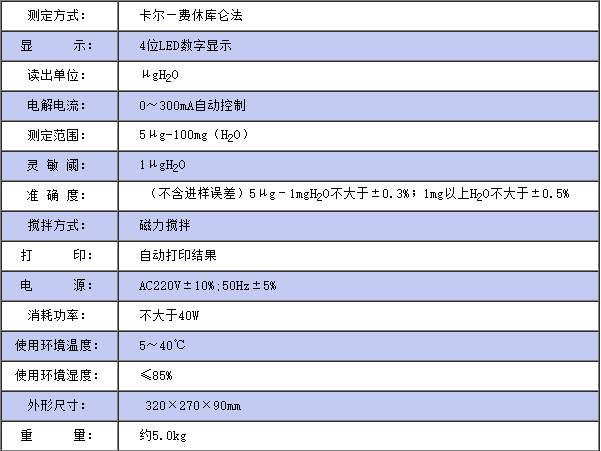 儀器符合GB/T7600;SH/T0246;GB/T606及采用卡爾—費休法測定樣品中水分的有關(guān)標準。儀器采用了先進的自動控制電路,電解電流自動跟蹤控制,外型結(jié)構(gòu)新穎,從而使該儀器工作更可靠, 使用更方便,具有分析速度快(一分鐘出結(jié)果)、操作簡便、精度高、自動性強等特點, 同時具有自動打印功能,可將實驗結(jié)果、做樣時間、樣品編號自動打印出來, 廣泛應(yīng)用于石油、化工、電力、鐵路、環(huán)保等部門。
